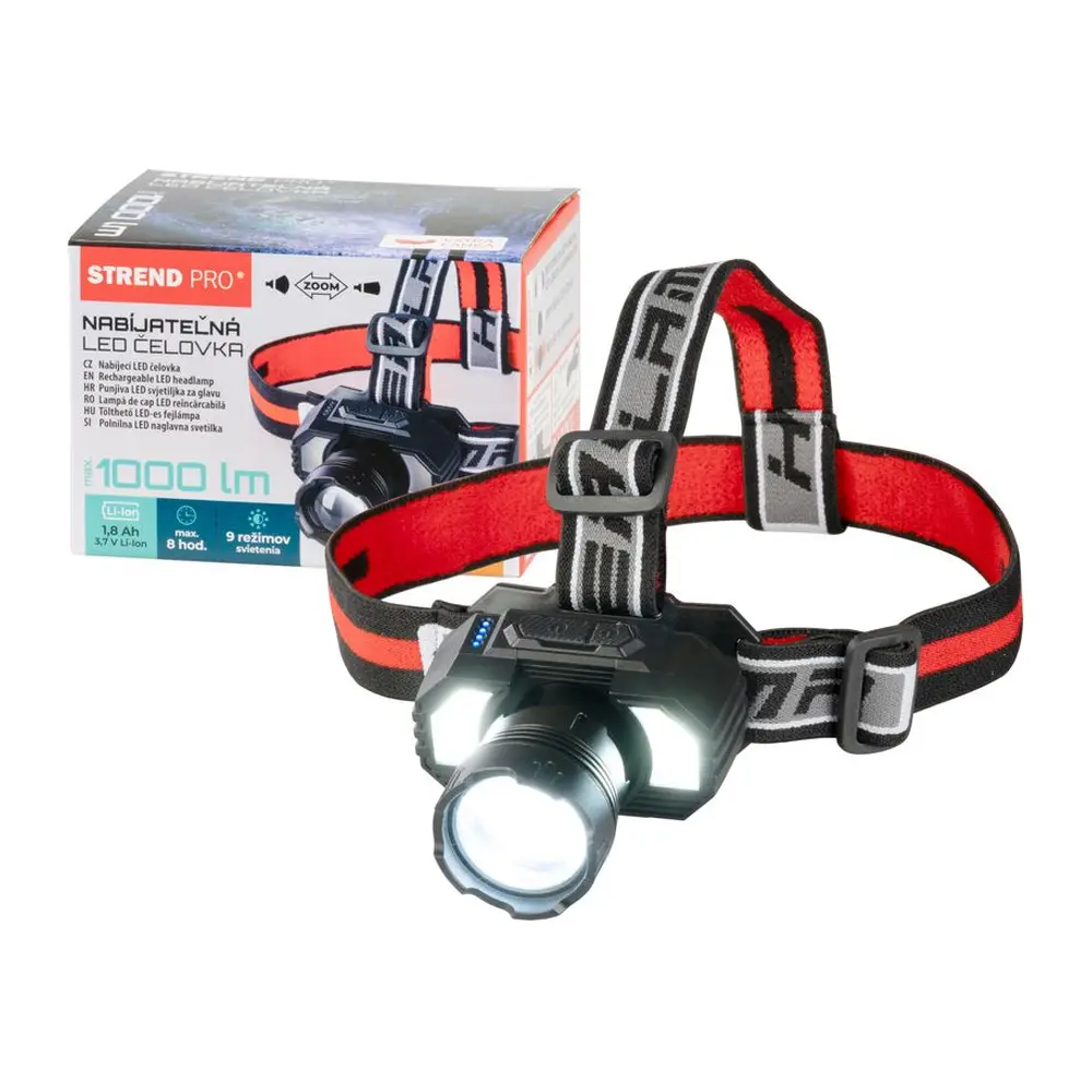 Čelovka Strend Pro Headlight H4019, XHP70 LED, 2000 lm, ZOOM, 3×2000 mAh, IP43, USB nabíjanie